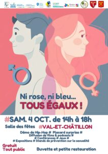 Les acteurs jeunesse du territoire de Vezouze en Piémont vous invitent à un événement festif et engagé autour de l’égalité filles-garçons, le samedi 04 octobre de 14h à 18h, Salle des Fêtes de Val et Châtillon.